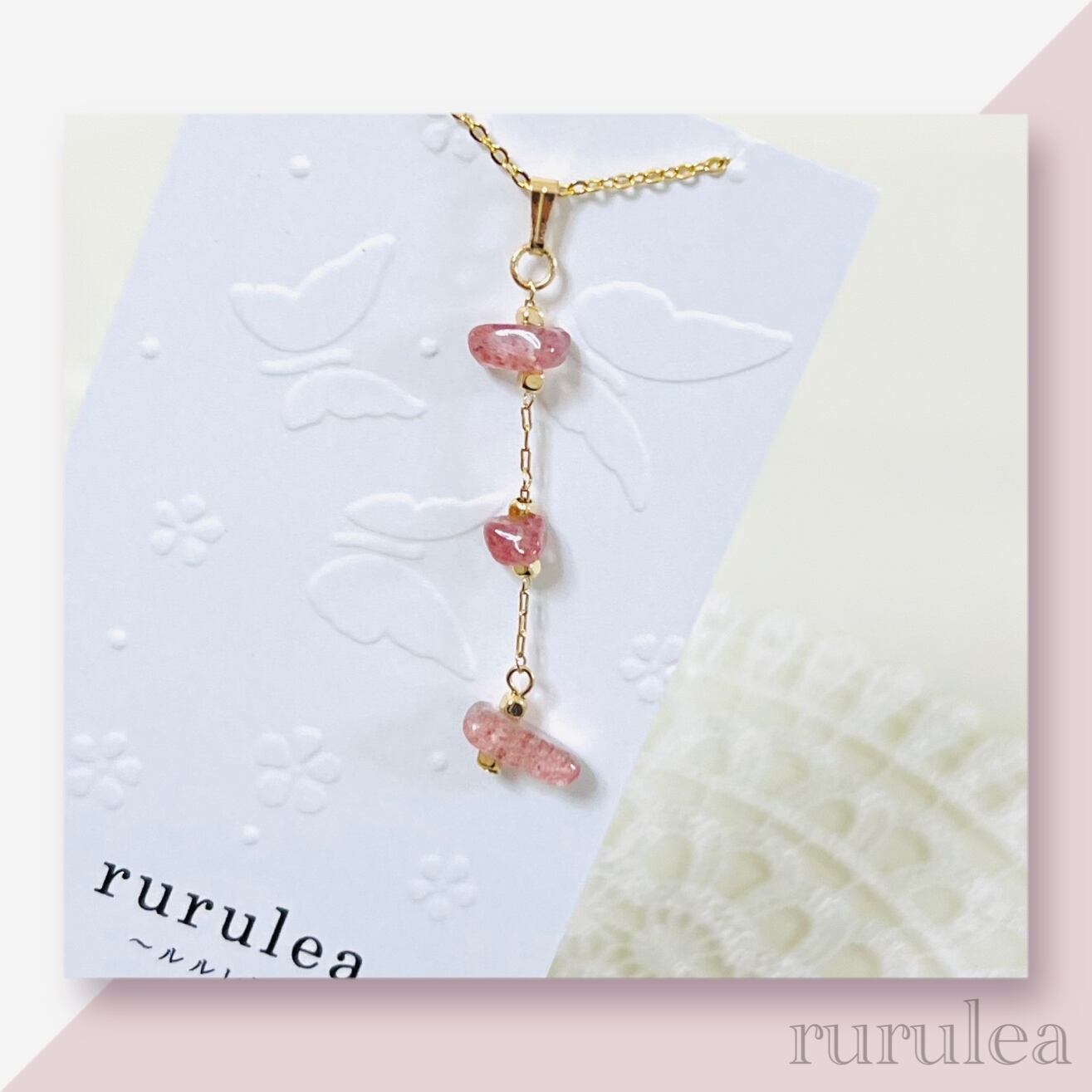 『ストロベリークォーツ』を使用したさざれ石デザイン天然石ネックレスです。