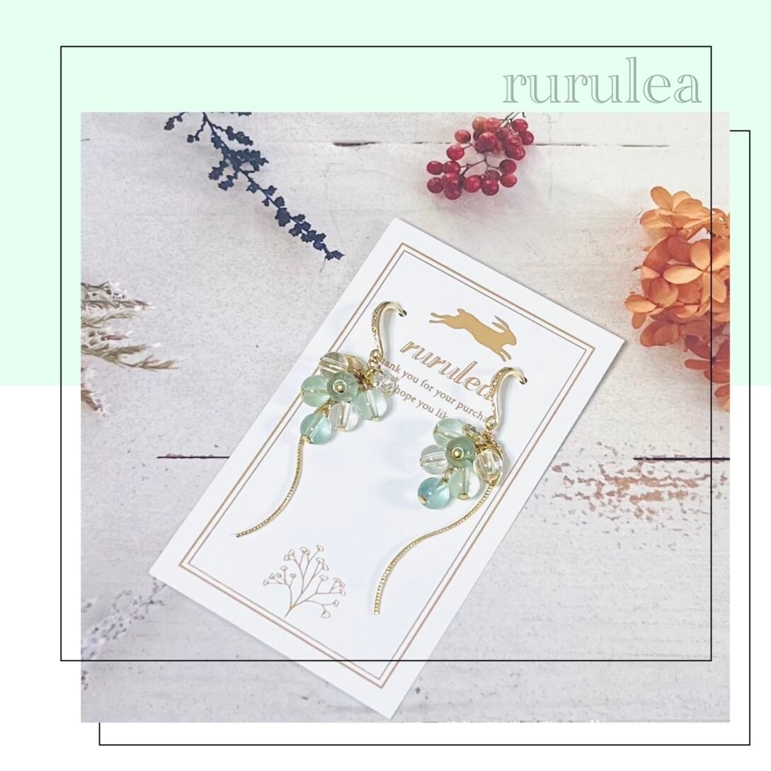 『フローライト』を使用したマスカットデザイン天然石ピアス/イヤリングです。