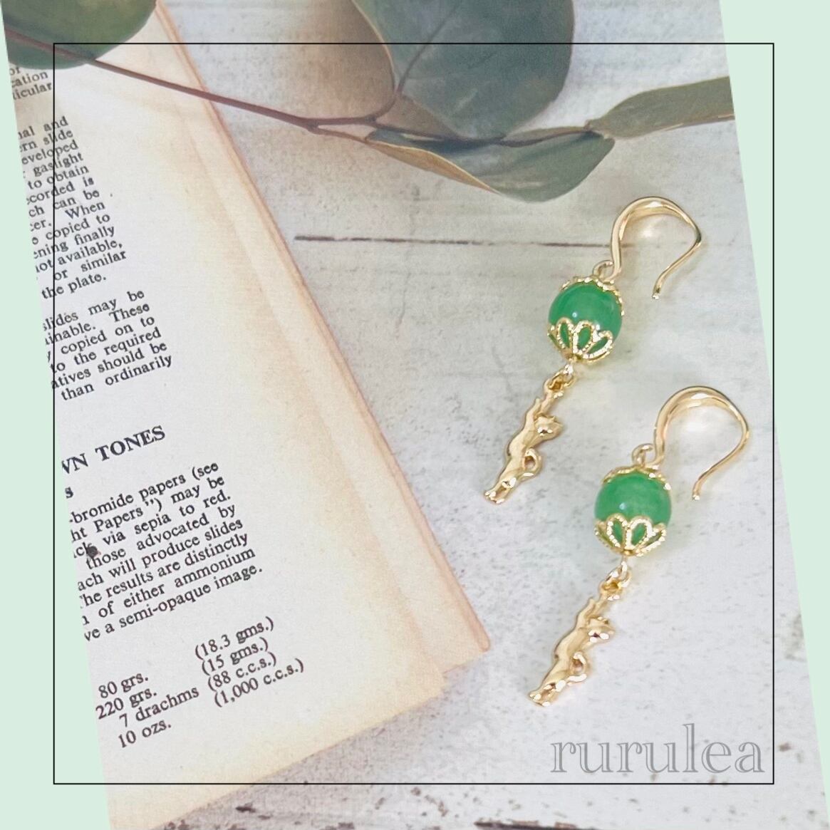 『アベンチュリン』を使用した猫デザイン天然石ピアス/イヤリングです。