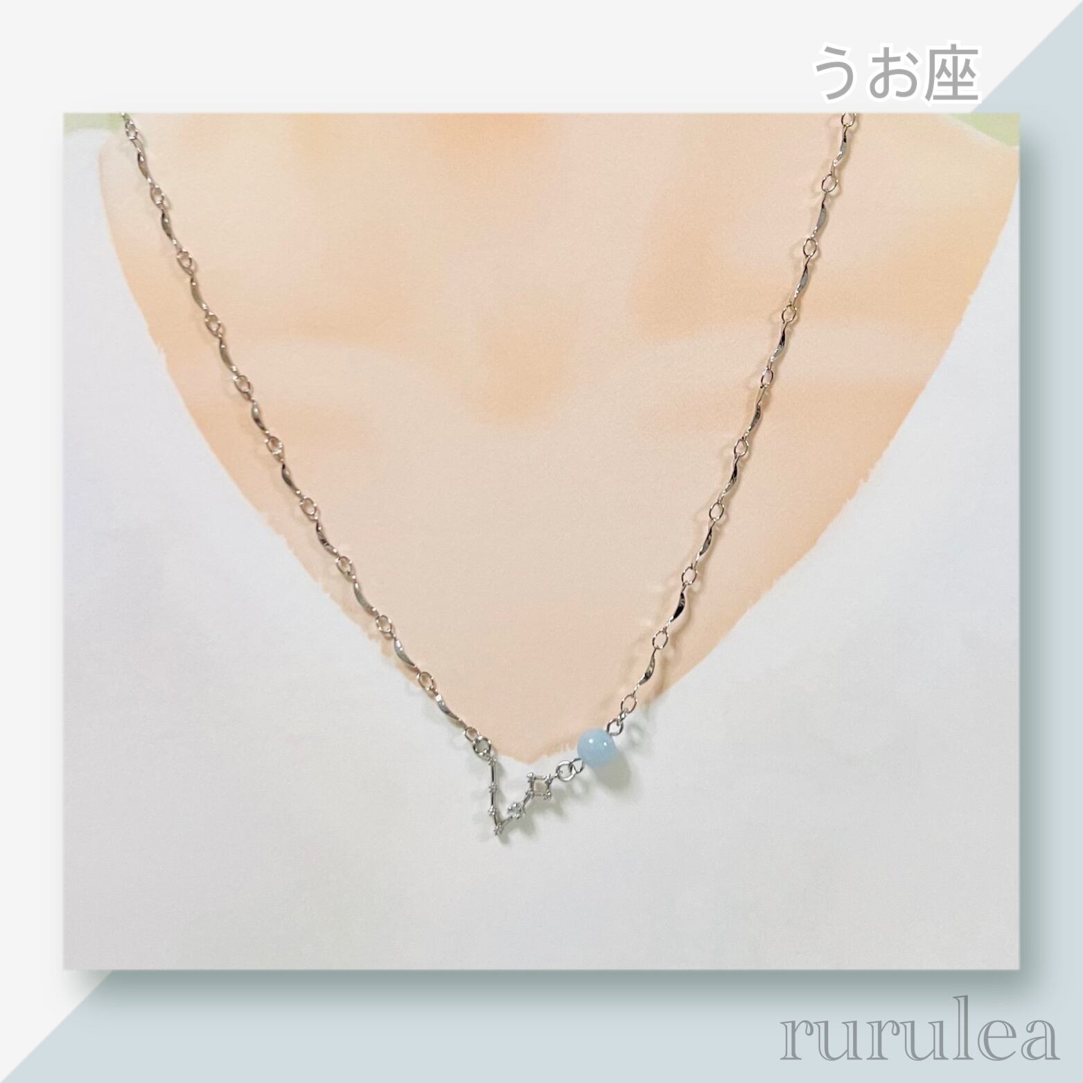 『アクアマリン』を使用した星座(うお座)デザイン天然石ネックレスです。