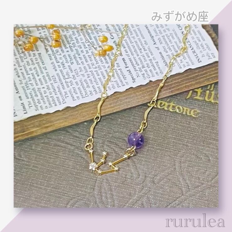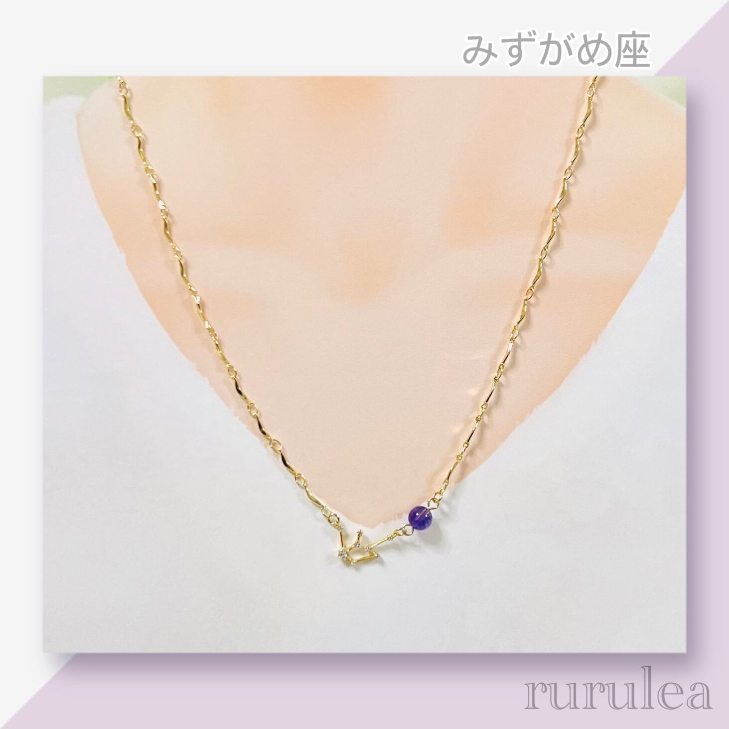 『アメジスト』を使用した星座(みずがめ座)デザイン天然石ネックレスです。